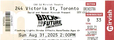 It's always great to end a Mirvish season on a high note, and as far as we are concerned, BTTF did precisely that. We both loved it, and based on audience reaction, many people felt the same way. I thought Marty's character and his parents were the closest to the movie versions. Loved how it opened, showing today's date, and at the end, they brought the story back to the present (Aug 31 for us). Needless to say, that illusion of the car moving was amazing.