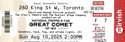 Talking to the people behind us, they were commenting on how this play was so much better than Natasha, Pierre, etc. We thought so too.