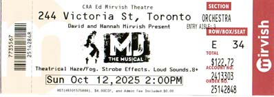 So, how did we rate this production, attended by the three of us? Jordana gave it a 7/10, Lisa gave it a 6/10. I came right down the middle, with a 6.5/10. That means the final score for MJ The Musical is 6.5/10.