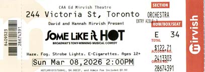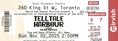 What a great play to conclude our 2025 excursions downtown to see a Mirvish production. At first, I didn’t think I would enjoy Tel Tale Harbour. However, little by little, as the play progressed, I became more hooked and saw the production for what it was – a musical comedy or a musical rom-com. The storyline became obvious by the time the second act rolled around, but by then, who cared? It was a fun romp, and the music was infectious. By the play’s end, everyone was clapping along with the music. Lisa scored the final play of 2025 a 9/10. I would have given it a 10/10, but felt that there was no real need for an intermission. After all, the play ran 140 minutes with a 20-minute intermission. They could have easily dispensed with the mid-show break. So I wound up giving it a 9/10 as well.